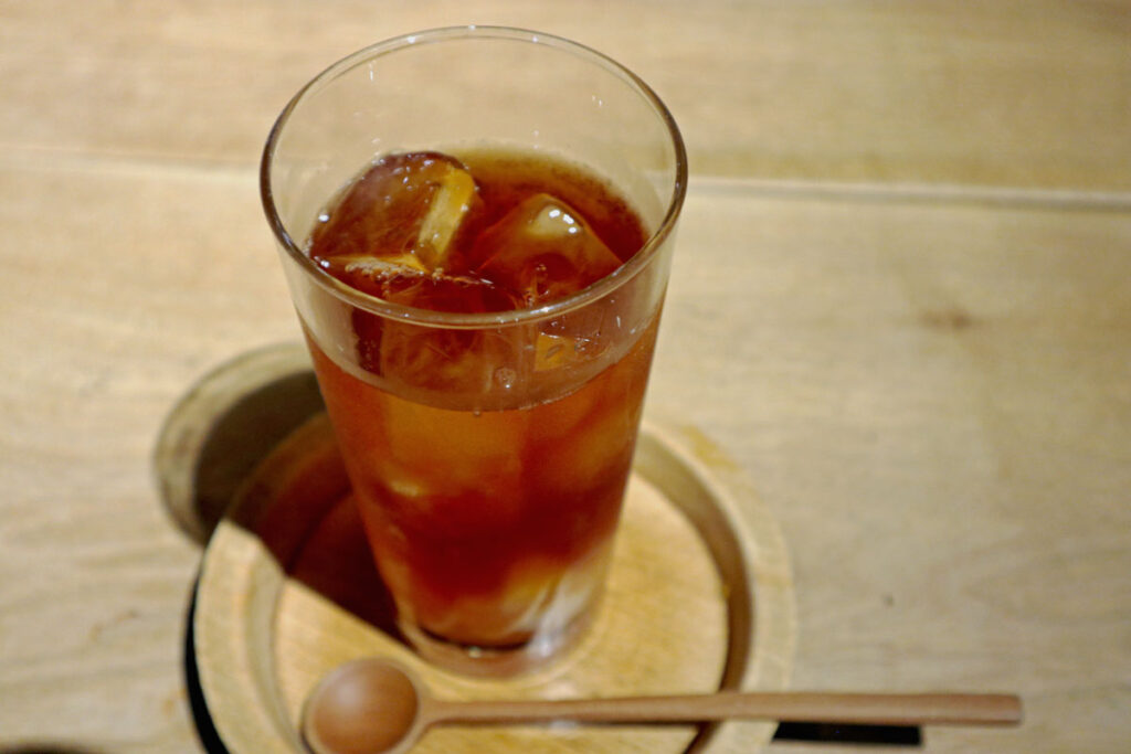 美観地区、桃のデザート
